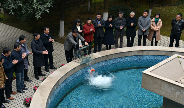 隨后,公司黨委書記、總裁李葉青投放錦鯉,當寓意吉祥的錦鯉躍入水中時,現(xiàn)場掌聲雷動,干部員工激動自豪之情溢于言表,慶祝活動也在歡聲笑語中結(jié)束。