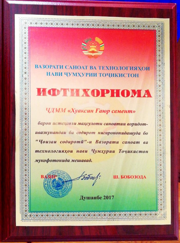 表彰會上,塔吉克斯坦工業(yè)與新技術(shù)部部長波波佐達(dá)·沙夫噶特高度評價了華新亞灣公司在塔吉克斯坦工業(yè)和經(jīng)濟(jì)建設(shè)、出口創(chuàng)匯,及履行社會責(zé)任等方面做出的巨大貢獻(xiàn),勉勵其他外資企業(yè)以華新水泥為標(biāo)桿,再接再厲,為塔吉克的發(fā)展貢獻(xiàn)更大的力量。